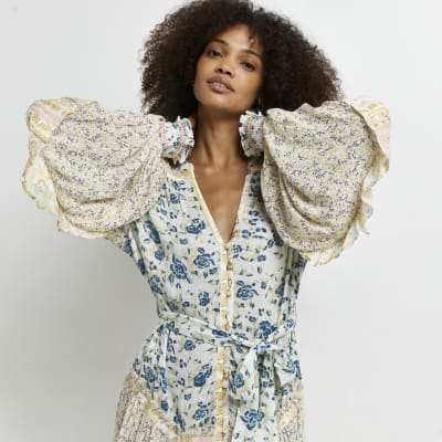 Blue Floral Mini Shirt Dress River Island